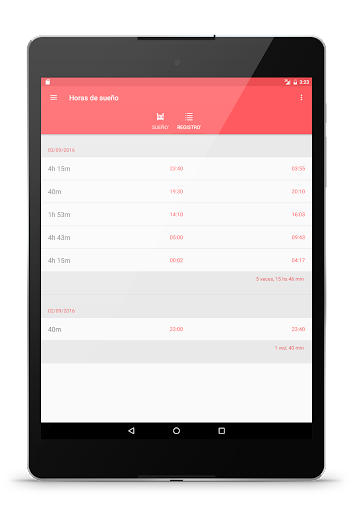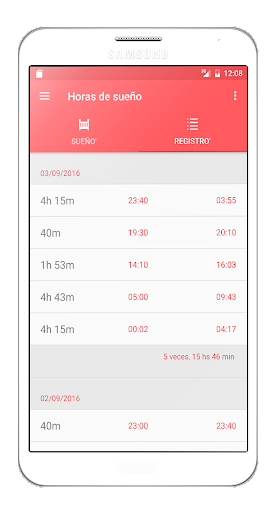 - dua bahasa tersedia (Inggris dan Spanyol)>- Pendaftaran jam tidur menggunakan stopwatch, atau membuat pendaftaran secara manual.
