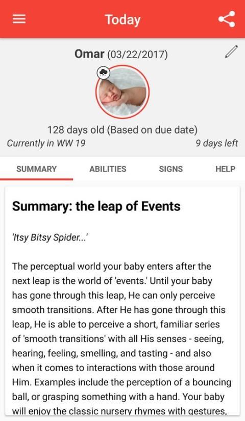 - Kalender Menampilkan ketika bayi Anda membuat lompatan dalam perkembangan mentalnya