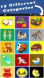 We have designed this app with 15 different categories and 150+ items (Food, Fruits, Vegetables, Parts of Body, Pets, Farm Animals, Toys, Sports, Vehicles, Eating Time, What I Do, Bath Time, Cloth, At Park, and Sleeping Time.