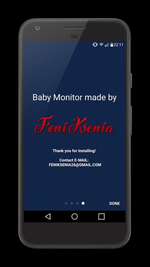 "Baby Monitor" bekerja dalam modus online, sehingga Anda terus-menerus dapat mengawasi bayi Anda dan bangun ketika Anda mendengar suara atau bayi menangis.