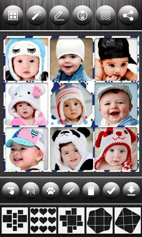 ★ Select multiple baby photos from Gallery album. Hundreds of shapes layouts for 1 to 9 photos.