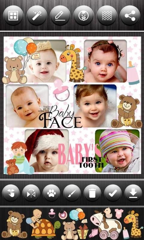 ★ Add a text to your photo, and decorate the baby collage with some amazing stickers.