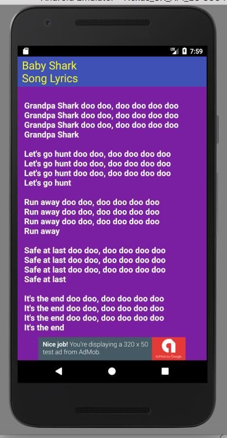 Lyrics of the popular song "Baby Shark".