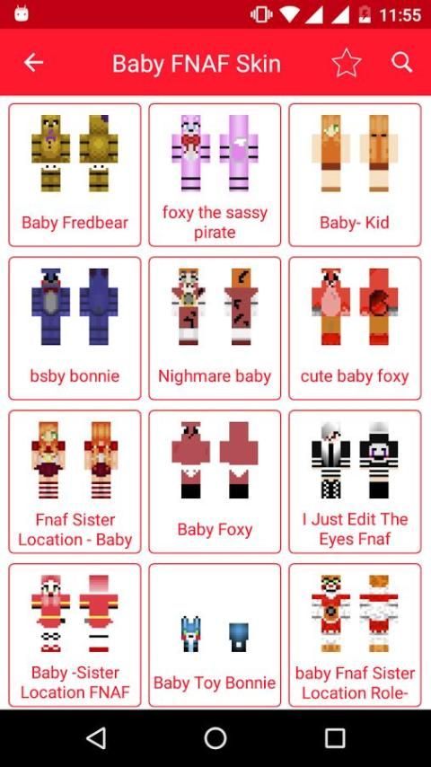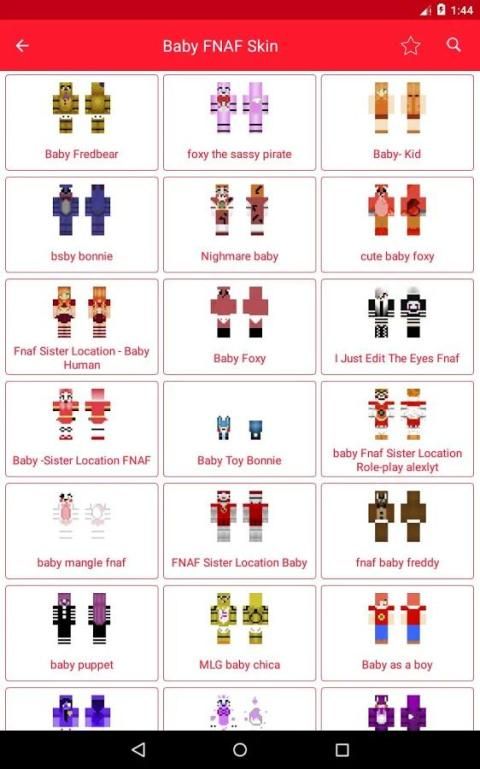 Caterogies adalah Baby Girl, Baby Boy, Baby Hewan dan Bayi FNAF Skins.
