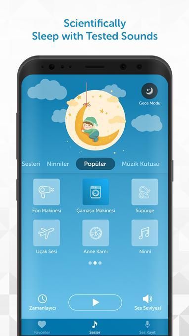 Baby sleeper is an application which sounds tested for similarity to sounds in mother’s womb are included. There are lullabies, songs and sounds making baby sleep that will provide your baby sleep in the application. You can provide your baby sleep by feeling safe and peaceful by using “Baby Sleeper” that is the choice of more than 50.000 happy mothers.