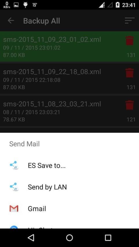 ● File Share backup ke email (via Email Client yang sudah diinstal pada perangkat Anda)