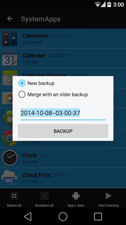 * = Can cadangan hanya aplikasi untuk perangkat non-berakar. Akar diperlukan untuk data aplikasi dan sistem aplikasi backup.
