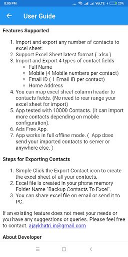 Fitur 1.Ekspor atau ambil cadangan semua kontak untuk WhatsApp. 2.Ekspor dan impor kontak tanpa batas.