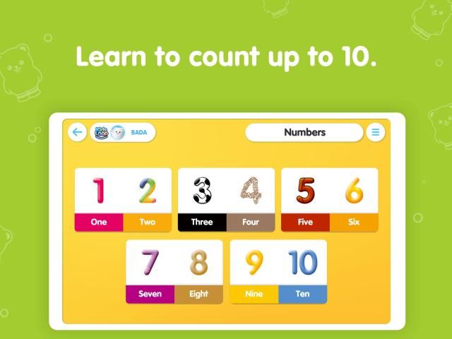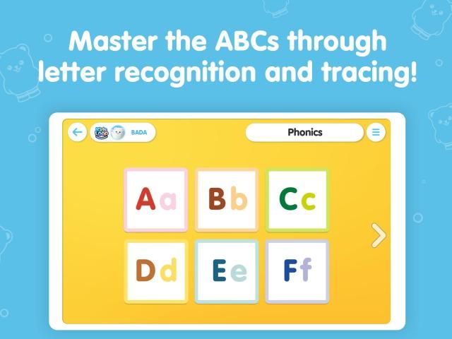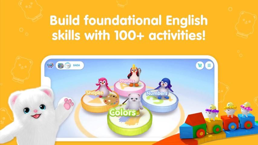 Your child will love learning with Bada and his friends! Fun activities, books, songs, and interactive quizzes enable your child to learn in an exciting new way and also motivate your child to discover the building blocks of English related to colors, shapes, numbers, and phonics.
