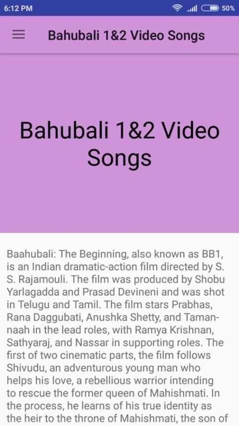 Selamat Datang di Bahubali 1 & Lagu app 2 Video. Kami harap Anda akan bersenang-senang dan menikmati aplikasi yang mudah untuk berinteraksi dan navigasi.