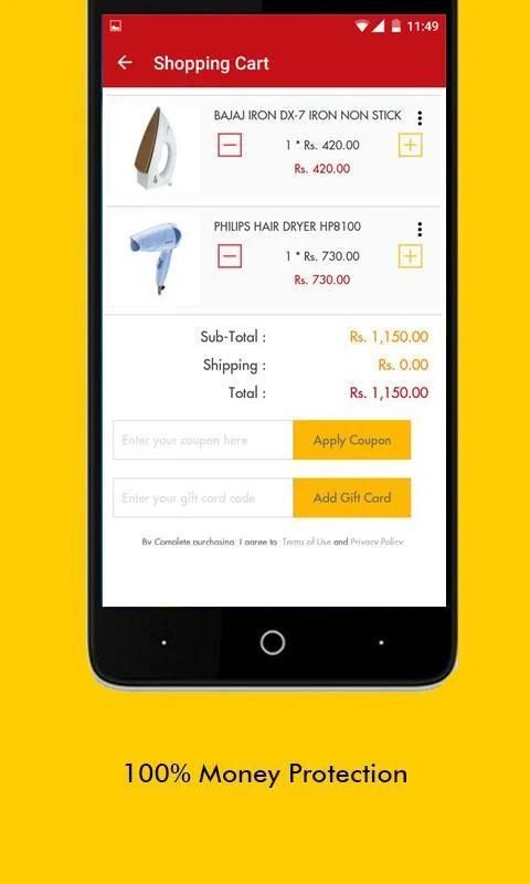 - You can purchase/use Gift cards, Discount coupons while transacting through the App.