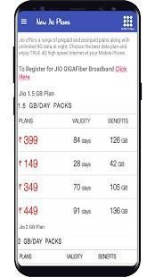 pelanggan Jio dapat memeriksa informasi dari rencana tarif mereka dengan mengirimkan pesan / SMS sebagai RENCANA MY ke 199. SMS balasan akan dikirim oleh Jio menyebutkan rincian rencana tarif aktif.