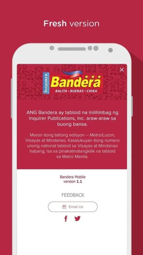 "Balita - Buenas - Chika" Bandera Ponsel app ang na magbibigay ng sari-Saring Balita, tips di resulta ng iba't ibang uri ng Lotto, Horoskop pampaswerte di maiinit na showbiz chika para sa Masang Pilipino.