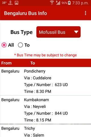This app provide all information about Bangalore Mofussil bus and Town bus.