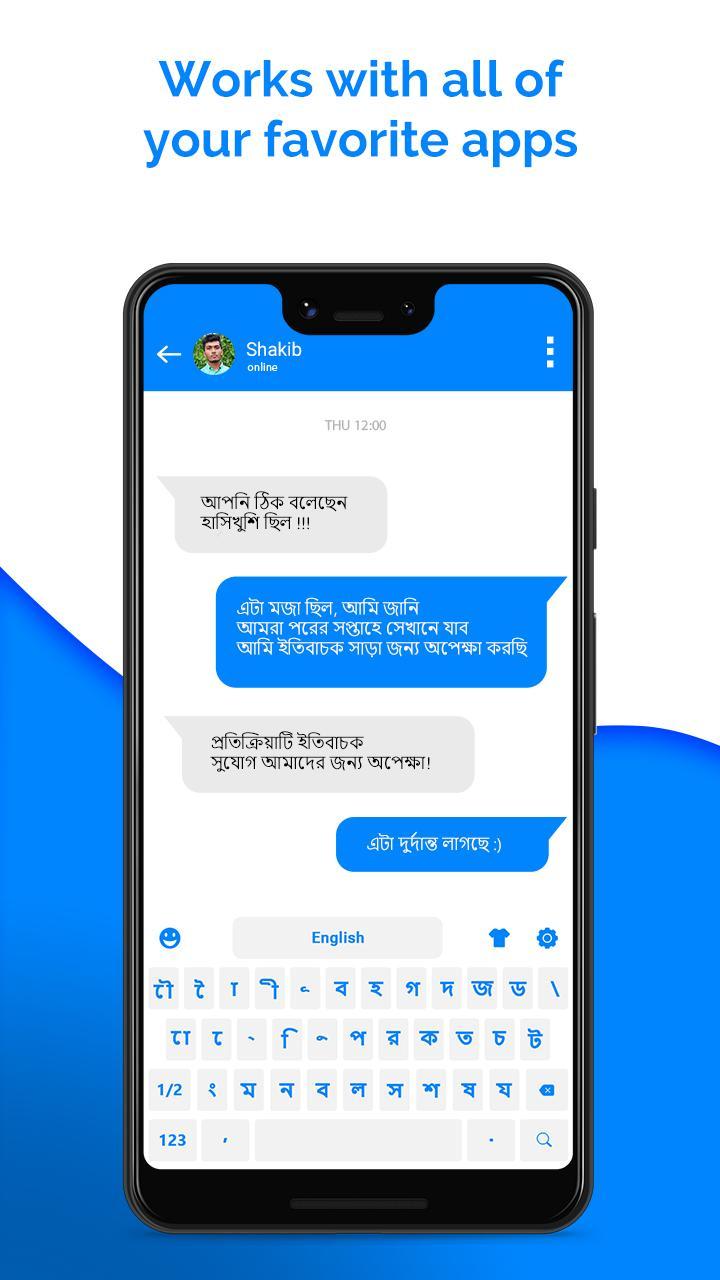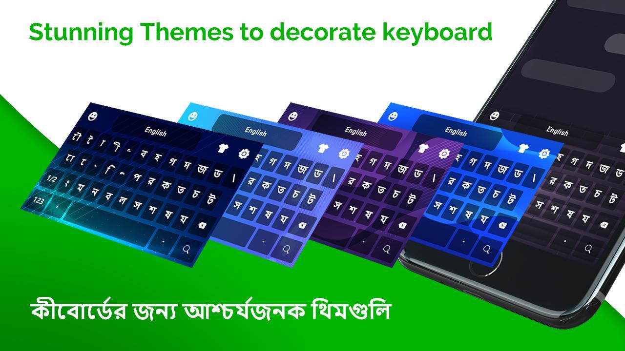 Bangla Keyboard 2019: Bengali keyboard is best mobile keyboard for typing in Bangladeshi language. Bengali Typing keyboard allows the user to write and type message in Bangla language and Bengali text words. Send message, email, and update status in Bengali.