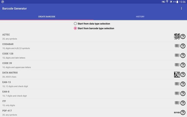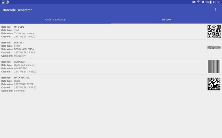 Anda dapat mengkodekan berbagai jenis data dengan aplikasi kita dan menciptakan berbagai barcode satu dan dua dimensi.