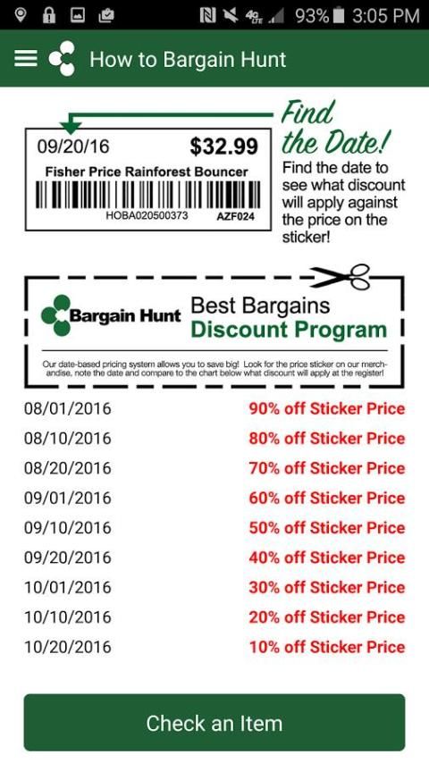 Bargain berburu adalah jaringan ritel diskon unik yang memungkinkan konsumen untuk membeli merek kualitas barang dagangan di bawah harga eceran normal. Pada Bargain Hunt, berharap untuk menemukan desainer pakaian untuk pria, wanita, dan anak-anak, elektronik terbaru dan terbesar dan HDTV, pilihan besar barang-barang rumah dan rumah tangga, semua jenis mainan dan sepeda, ton barang olahraga dan perlengkapan outdoor, baik indoor dan outdoor furniture, dan banyak item yang lebih menarik.