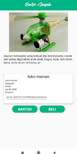 Barter Sampah adalah platform jual beli sampah online dengan fitur utama yaitu barter, menghubungkan penghasil sampah (rumah tangga, kantor dan bisnis) dengan kolektor lokal terdekat, agar lebih mudah bertransaksi atau menukar sampah dengan barang lainnya seperti kerajinan, sembako, dan uang, seperti aneka sampah besi, plastic, aluminium, besi & logam, hingga botol plastik. Jika melakukan barter diwajibkan untuk COD atau bertemu langsung dengan pengepul atau pengrajin maupun toko sembako.