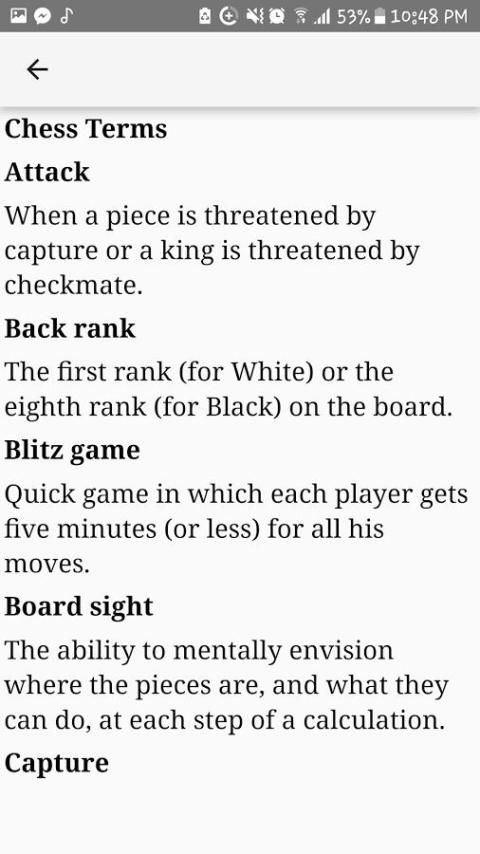 Sebagian besar kegiatan memiliki awal, tengah, dan akhir. Dalam catur itu tidak begitu sederhana! Pembukaan melakukan menandai awal dari sebuah permainan catur, tapi itu berarti banyak lagi. Kadang-kadang berguna untuk memikirkan catur sebagai pertempuran antara dua tentara lawan. Bahkan, chessmen mewakili kombatan khas selama Abad Pertengahan (tahun 400-1500 Masehi), ketika aturan modern permainan didirikan. Menggunakan metafora ini, pembukaan adalah fase di mana Anda mempersiapkan tentara Anda untuk pertempuran. Ketika kedua belah pihak sepenuhnya siap, tahap selanjutnya adalah middlegame, ketika rencana serangan yang dirancang, untuk mencapai keuntungan dari posisi atau ‘materi’ (memiliki lebih laki-laki), dengan tujuan akhir dari checkmating raja musuh. Endgame adalah fase di mana banyak potongan telah diperdagangkan, sehingga raja dalam bahaya kurang dari skakmat. Kemudian pertempuran sering termasuk berusaha untuk mempromosikan pion menjadi ratu, dan menggunakan ratu ekstra untuk serangan checkmating.
