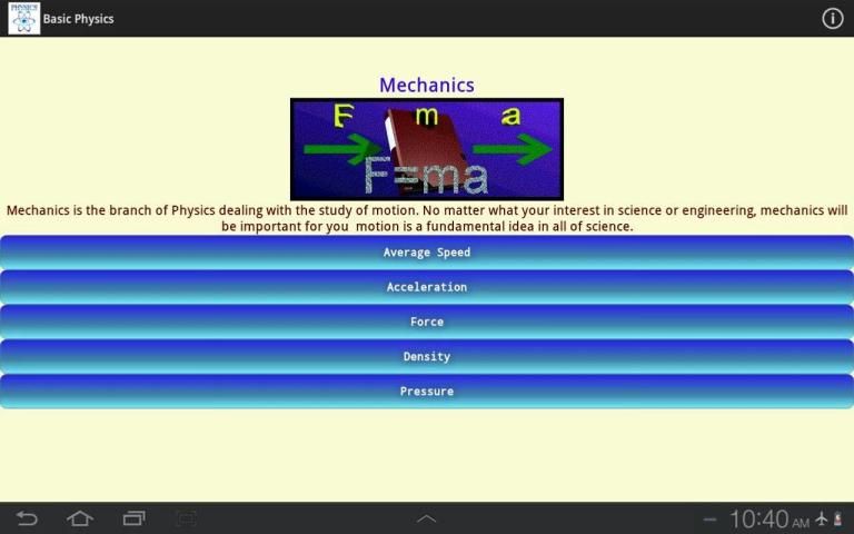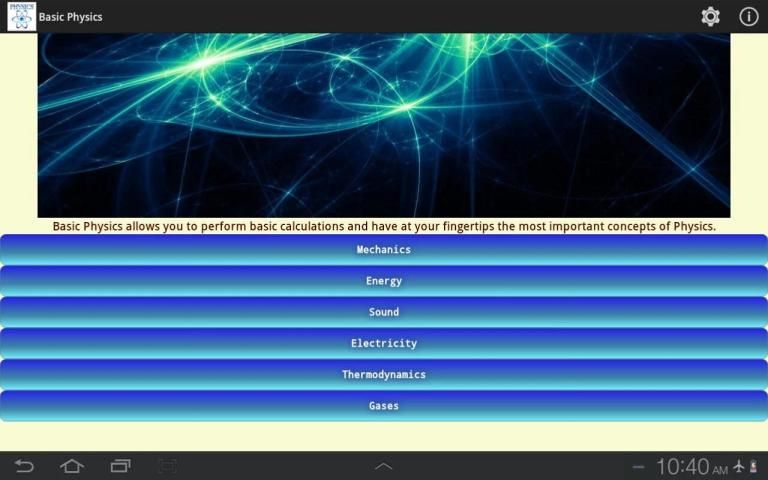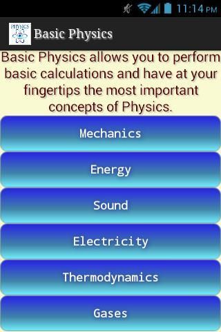 Fisika Dasar memungkinkan Anda untuk melakukan perhitungan dasar dan memiliki di ujung jari Anda konsep yang paling penting dari Fisika.