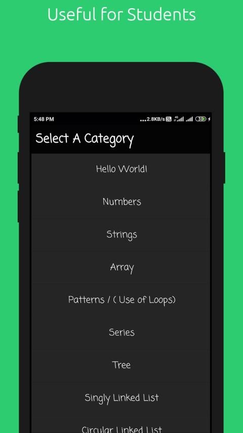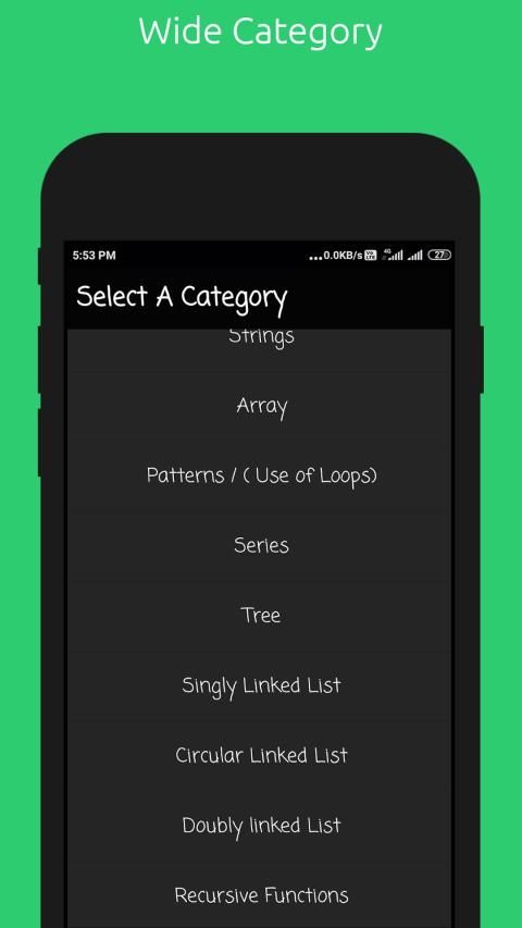 Aplikasi ini berisi kode sumber program level entri. Ini termasuk program dasar seperti operasi pada string, angka array (Baik tunggal dan Dimensi Ganda), dan banyak lagi. Ini juga termasuk contoh pada loop, panggilan fungsi berulang dan lain-lain.