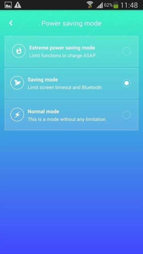 Ekstrim Power Saving Mode: semua aplikasi yang dipilih akan dinonaktifkan sampai Anda mulai lagi.