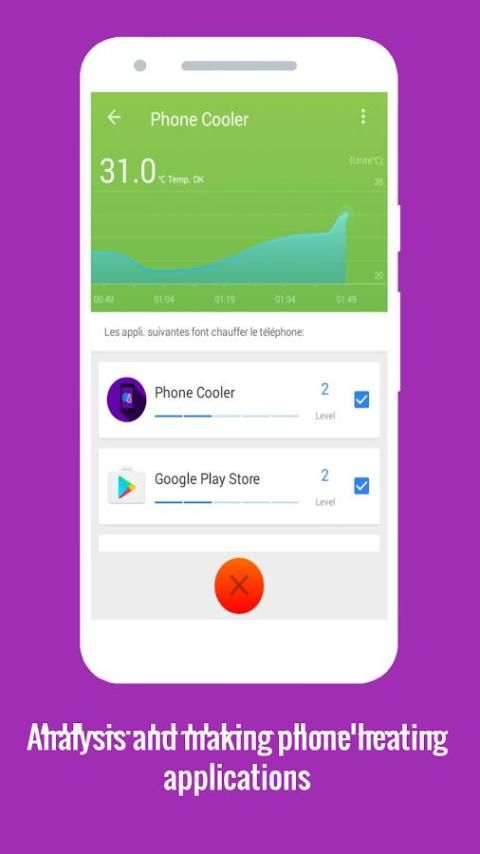 menurunkan menurunkan telepon suhu RAM CPU Battery. RAM CPU Baterai Cooler mendeteksi dan menutup memakan aplikasi untuk mengurangi penggunaan RAM CPU Baterai dan suhu telepon lebih rendah & memberikan deteksi overheating dinamis mengurangi penggunaan RAM CPU baterai dan suhu menurunkan menurunkan sumber daya berat. Super Cooler yang Anda butuhkan
