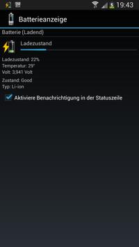 The Battery Display App shows basic battery information. With the notification service the battery charging level in percent can be viewed with one touch. There is a widget included to keep track on the charging state of the battery.