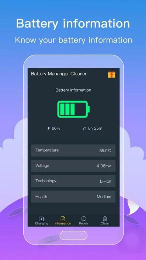 Baterai Mananger ponsel Cleaner lebih menggunakan 4 jam.
