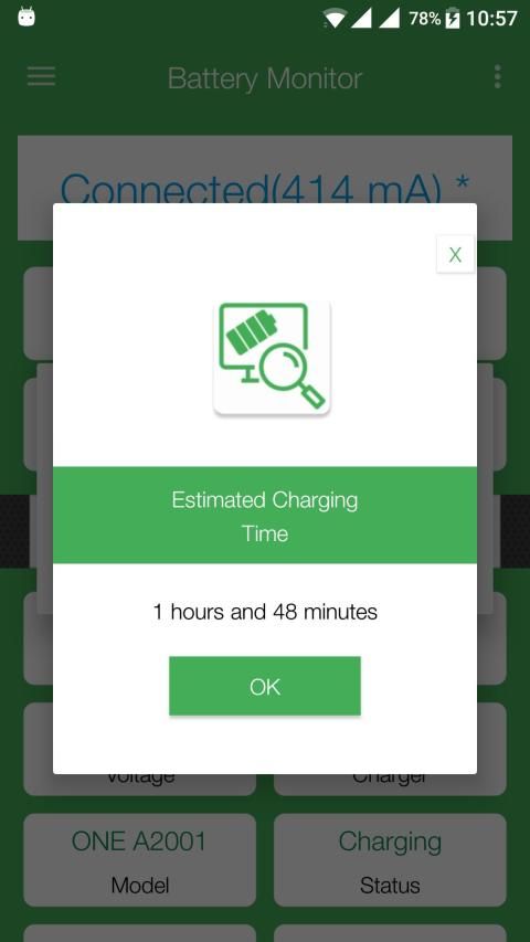 Battery Monitor 2019 menghitung sisa waktu pengisian daya ponsel Anda.