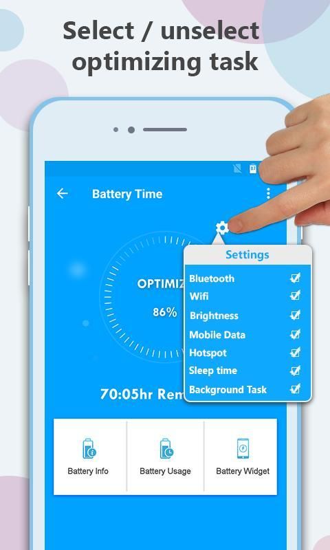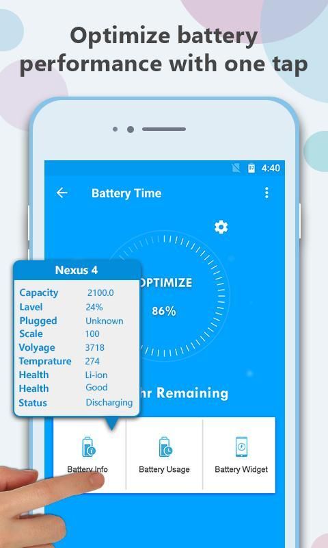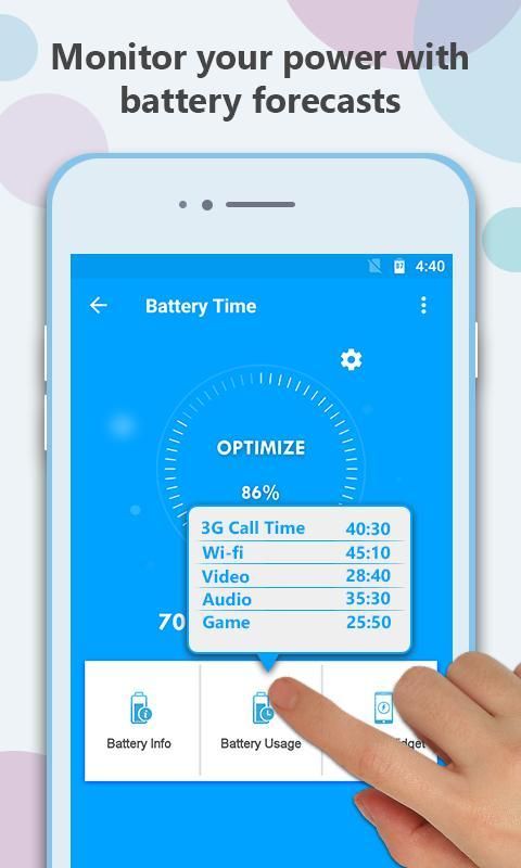 - perkiraan penggunaan baterai ketika di WiFi pada mode, menonton video, mendengarkan audio, bermain game, atau saat panggilan berlangsung. Bila baterai Anda rendah, Anda dapat memeriksa perkiraan saat ini dan melakukan tugas Anda sebagai per waktu yang tersisa.