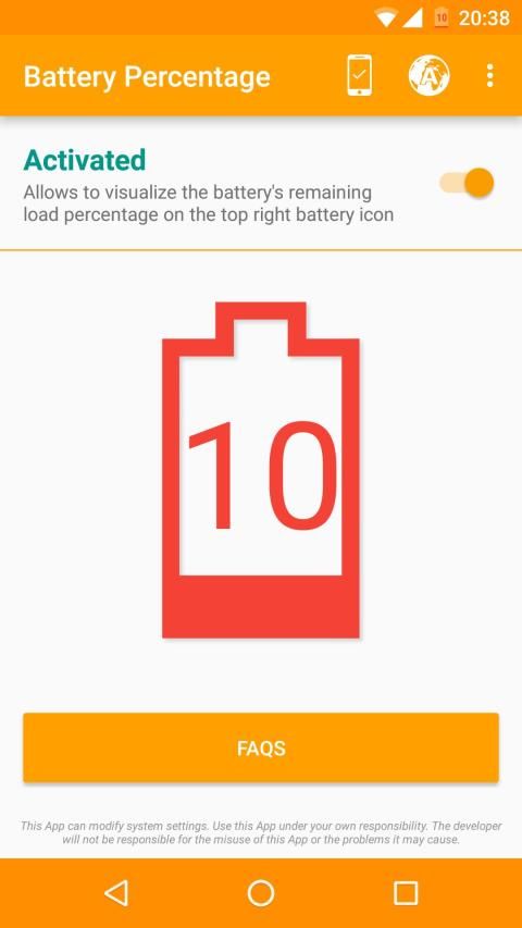 Anda hanya perlu menginstal App dan mengaktifkan persentase baterai. Setelah itu, Anda akan harus me-restart perangkat Anda, karena itu pengaturan sistem, bukan App itu sendiri.
