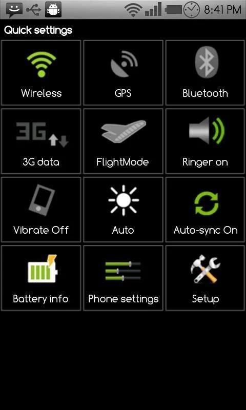 menyediakan akses cepat ke mengaktifkan atau menonaktifkan WiFi, Bluetooth dan GPS, mobile data (3G / Gprs) dan banyak lagi.