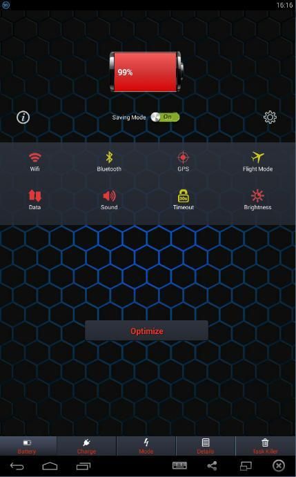 Battery Saver v_10 2016 has a special battery saving mode option. This mode will extend battery life when device is switched on.