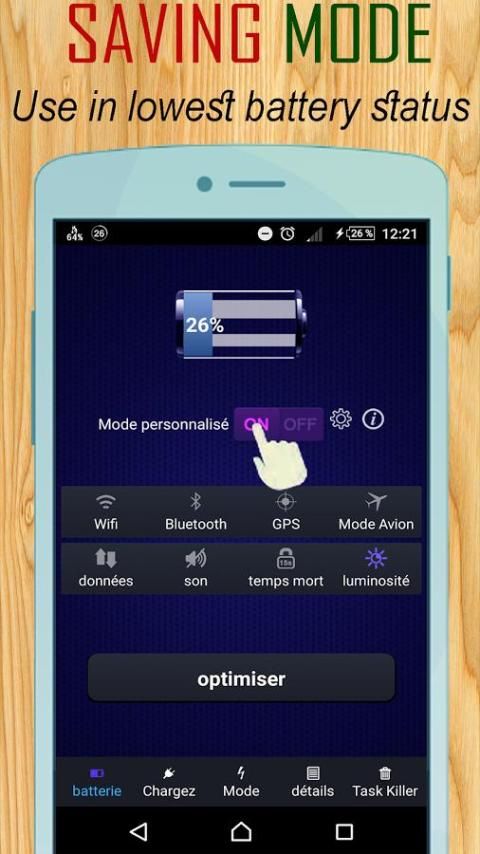 »Setiap kali ketika baterai klik rendah hanya untuk mengoptimalkan (disimpan) murni untuk mengaktifkan modus menyimpan.