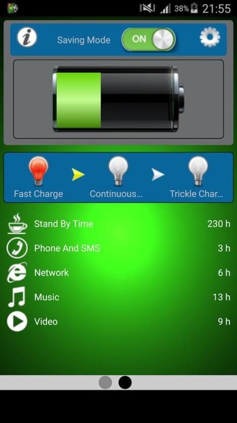 With Battery Saver, every time and everywhere you will know if your battery has enough to play a game, a movie, or to browse the web.