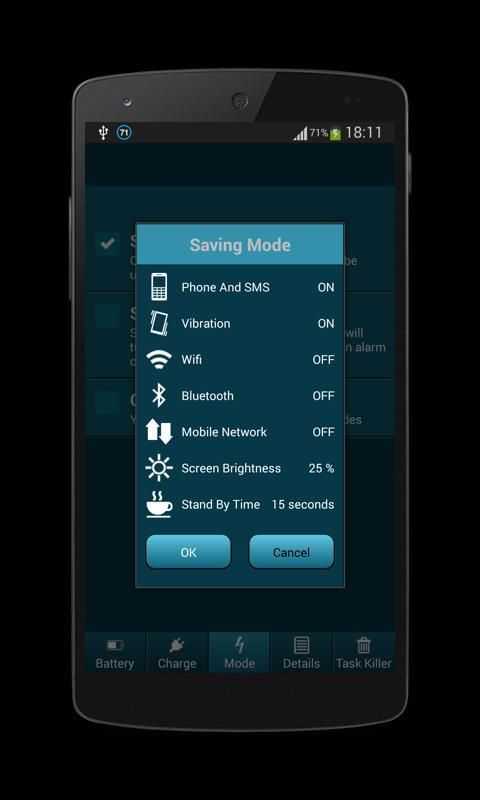 Aplikasi ini menyediakan tiga jenis mode untuk menghemat baterai Anda ketika berjalan rendah.