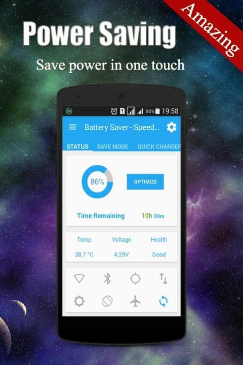 Battery Saver & Speed Booster is a battery saving tools that can extend your battery life up to 50% on your device.