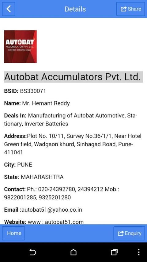 Kami menyediakan nama, kontak orang, nomor kontak & alamat rinci dari semua baterai & Surya pengusaha dalam bentuk yang paling ringkas & mudah dibaca. Database ini akan membuktikan penting untuk entitas bisnis Anda. Sangat Edisi Pertama dari Maharashtra Baterai Direktori diterbitkan pada bulan Oktober 2012. Kami terus perjalanan ini tahunan dengan yang semua kegembiraan utuh.