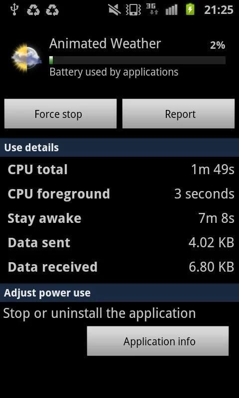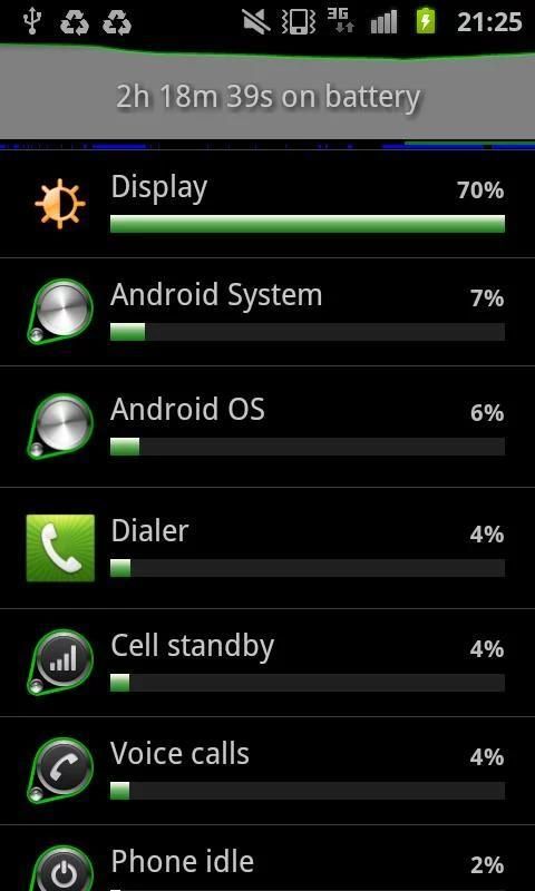 Manajer ini menunjukkan program yang memiliki penggunaan yang tinggi baterai dan memungkinkan berhenti dan menghapus mereka.