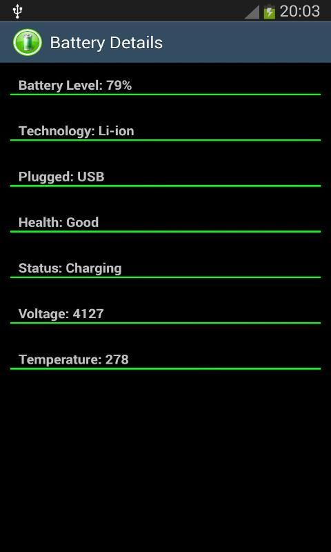 Di atas aplikasi ini Anda bisa menampilkan informasi teknis tentang status baterai, tegangan dan persentase, Ini membantu Anda untuk memverifikasi spesifikasi baterai saat Anda membeli satu.