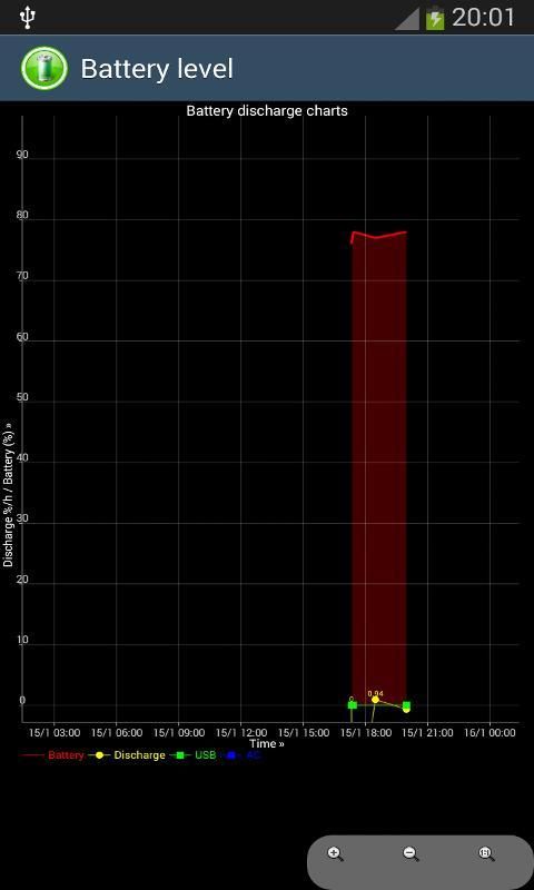 ***Shows graph zoom in/out and charge/discharge graph so that one can observe battery usage of mobile use for particular time.