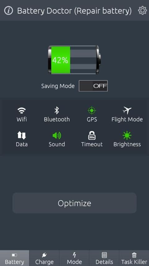 Dokter baterai (perbaikan baterai) membantu Anda untuk mematikan semua fungsi tambahan seperti WiFi, Bluetooth, GPS, suara dan aplikasi mengkonsumsi energi lainnya pada perangkat. App Akan Beritahu ketika kekuasaan turun dalam persentase dan bahkan ketika Anda pasang perangkat Anda dalam pengisian itu menunjukkan pengisian tahap.