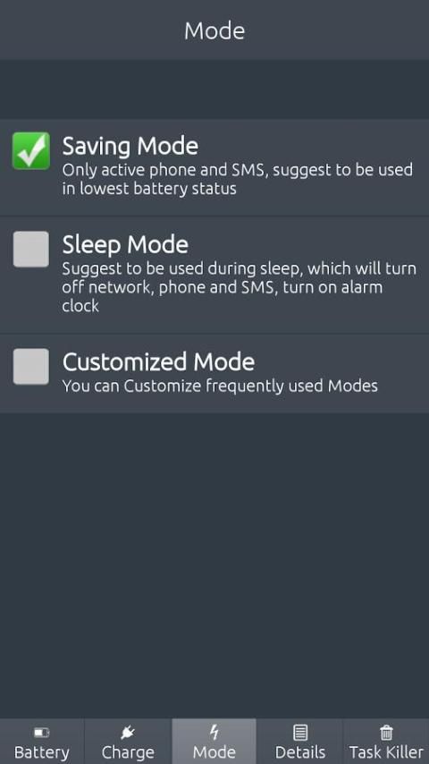 1. Saving Mode: (Gunakan di termurah Status Baterai)