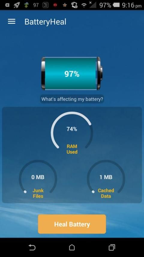 BatteryHeal adalah baterai meningkatkan dan manajemen daya alat all-in-one untuk kedua smartphone Android dan tablet. Ini menyediakan informasi baterai akurat, melacak perubahan baterai baru dan monitor sering diabaikan proses baterai pengeringan.