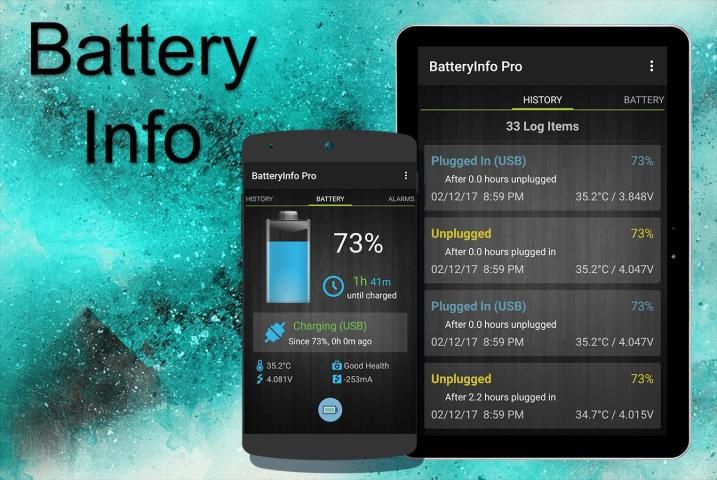 BatteryInfo gratis adalah salah satu yang terbaik aplikasi indikator baterai untuk Android. Info baterai pro versi juga tersedia di toko. BatteryInfo menampilkan tingkat baterai yang tepat dalam status bar dan aplikasi widget di desktop. itu memberikan kesehatan, suhu, tegangan dan waktu reaming untuk muatan penuh. Ini memiliki fitur untuk daftar data atau waktu kita sejak terpasang atau unplugged di area notifikasi. Ada tingkat baterai, Masuk untuk terpasang dan status dan mengatur waspada indikasi terisi penuh, di bawah 20%, di atas 90% dan masih banyak lagi.
