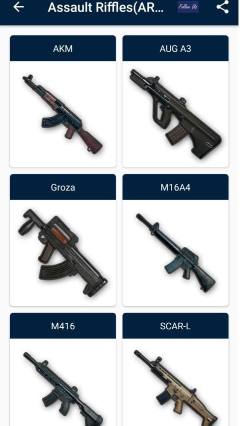 Assault Rifles,sniper Rifles and Sub Machine Gun and other weapons details are provided in this pubg app.