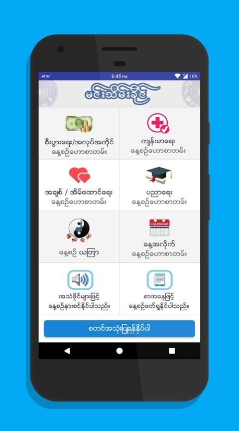 Prediksi akan ditampilkan di aplikasi baik melalui teks dan Audio direkam dalam suara Min Thein Khine sangat sendiri.