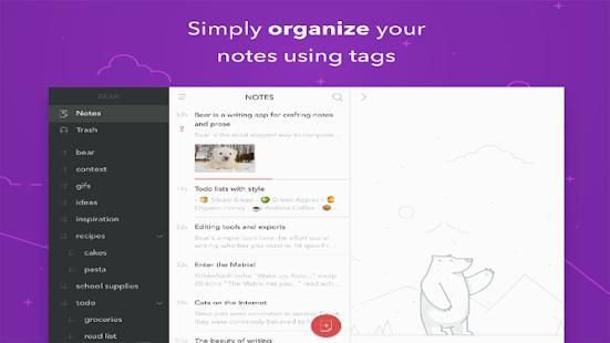 Bear is perfect for everything from quick notes, to code snippets, to in-depth essays. A focus mode helps you concentrate, and advanced Markdown and other markup options are an online writer's best friend. Full in-line image support brings your writing to life, and keep yourself on task by adding todos to individual notes.