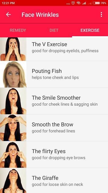 Ini adalah satu-satunya aplikasi yang mengurus tidak hanya obat alami buatan sendiri tetapi juga dari diet dan olahraga. Jadi di sini akan tahu diet untuk ketombe, diet untuk berakhir split, diet untuk kutil, diet untuk kulit bersinar, diet untuk kulit yang adil, diet untuk jerawat, diet untuk rambut kering & rusak dan banyak lagi. Di sini Anda akan tahu mana makanan yang harus dihindari untuk pemutihan gigi atau masalah kecantikan lainnya.